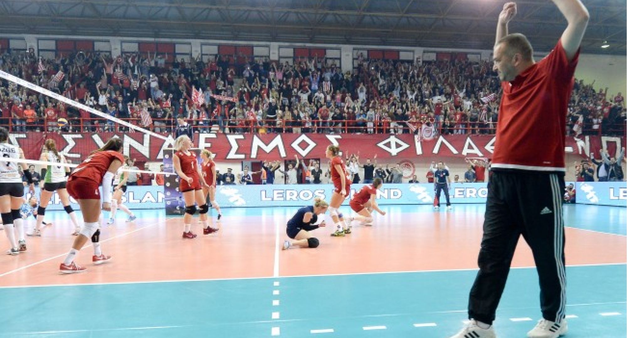 In the following three sets, a driving Olympiacos, propelled by their throbbing fans who kept their loud cheering going with almost no interruption, managed to complete a sensational comeback. The third set was a relatively easy win for the Greek side (25-20), whereas in the fourth one, the hosts stormed back from a 17-19 deficit to earn eight straight points and tie the match. The fifth set was a true one-team show. In a blazing atmosphere and under the fans deafening songs, Olympiacos were able to take on the driver’s seat. BURSA BBSK, on the other hand, made many mistakes and Olympiacos rallied to a comfortable 15-10 win to take a first step towards netting what would be a historic European title.