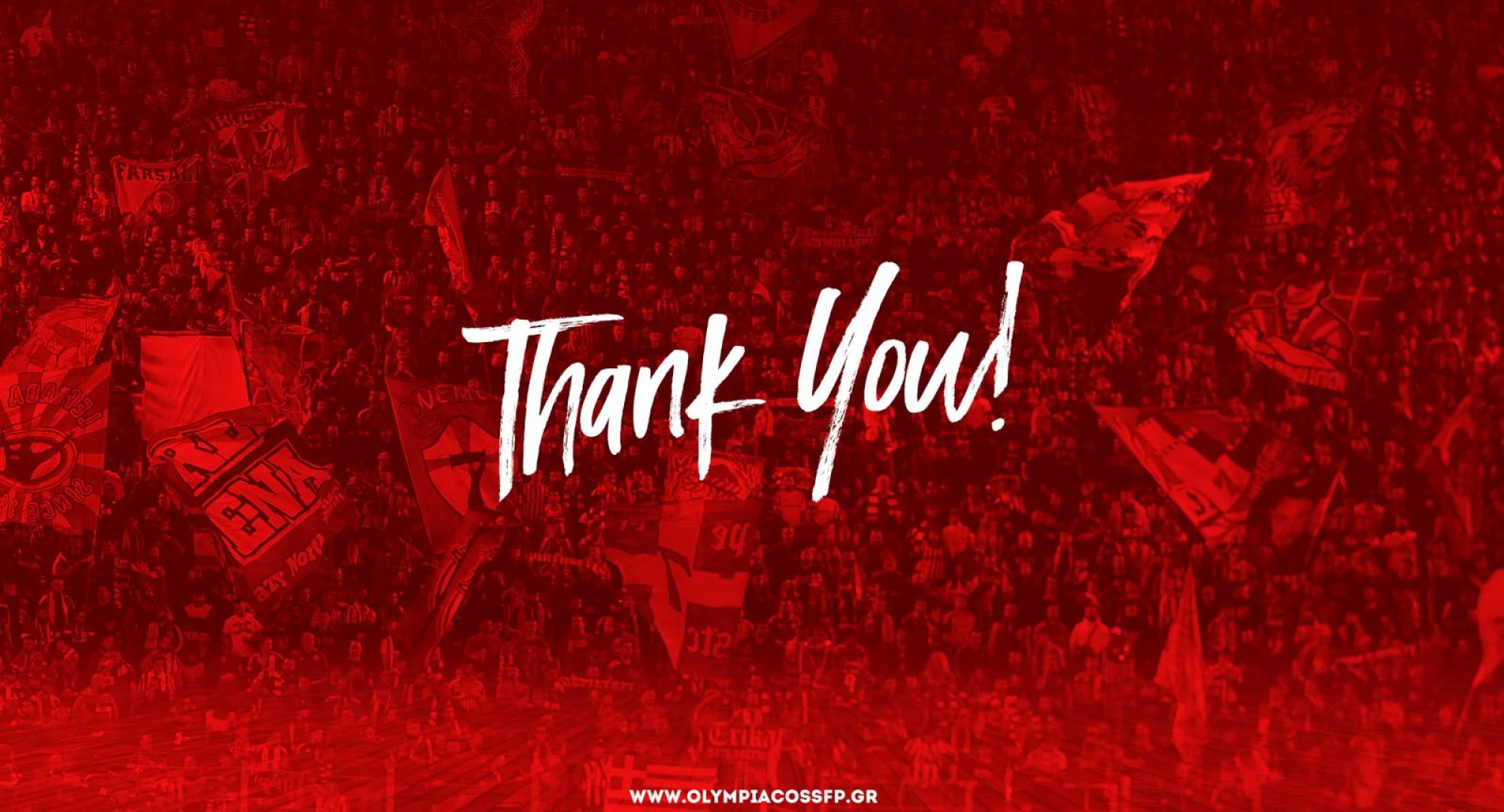 Η στήριξη αυτή μας γεμίζει υπερηφάνεια καθώς αντικατοπτρίζει τον μοναδικό δεσμό που ενώνει τον Ολυμπιακό με τον κόσμο του και αναδεικνύει το πάθος, την πίστη και την αφοσίωση που χαρακτηρίζουν τους φιλάθλους μας. Επίσης, αποτελεί και μία επιβράβευση της Διοίκησης για τις προσπάθειές της. Με τη δύναμη και τη στήριξη του κόσμου μας, προχωράμε με στόχο να κάνουμε υπερήφανους όλους τους φιλάθλους του Ολυμπιακού και να διατηρήσουμε τον πιο επιτυχημένο πολυαθλητικό σύλλογο, στην Ευρώπη, με 333 επίσημους τίτλους στα βασικά ομαδικά αθλήματα, στην κορυφή, μεγαλουργώντας σε όλα τα αθλήματα.