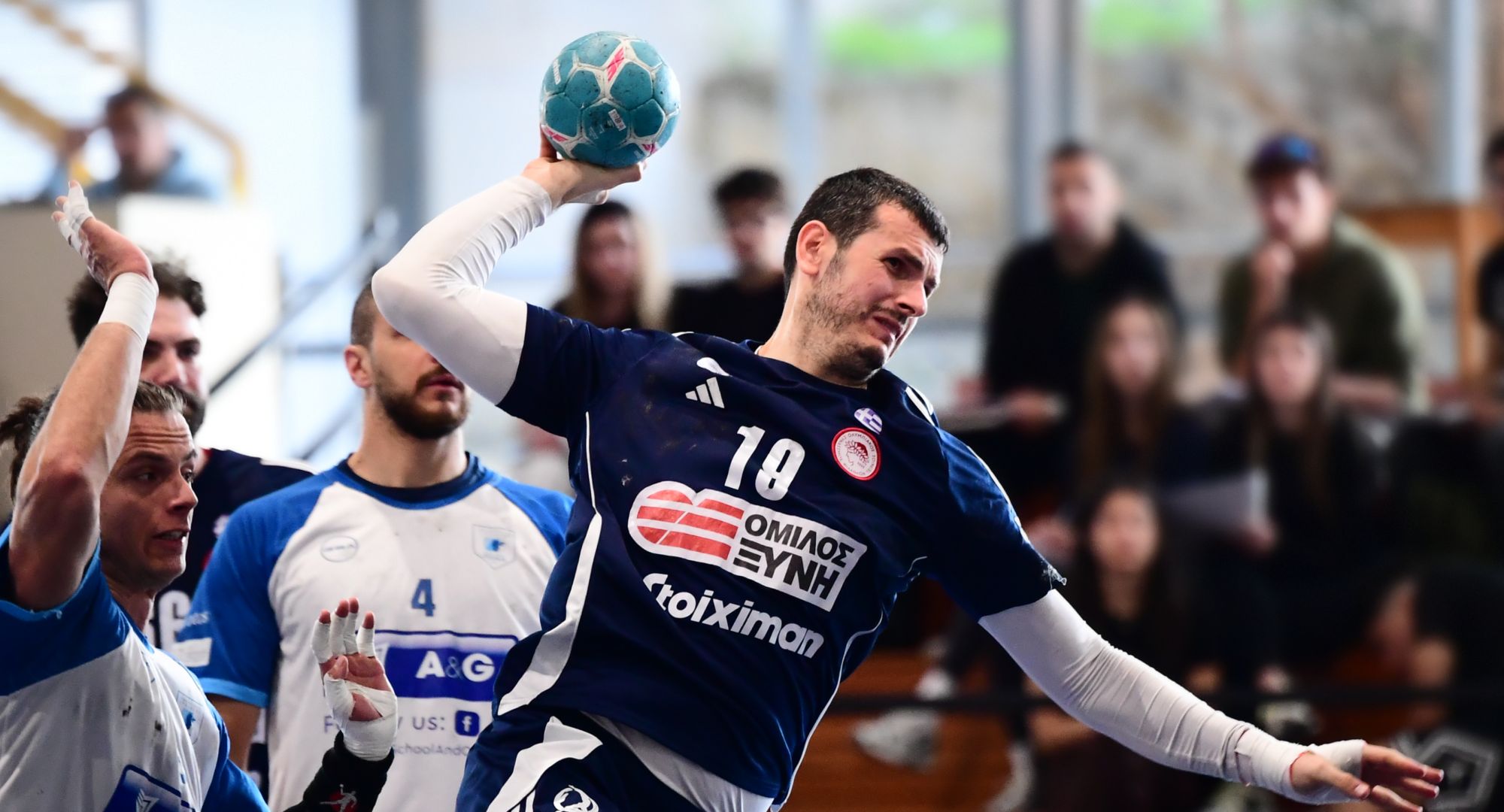 Λίγο αργότερα, ο Σούργκιελ ισοφάρισε σε 9-9 στην κόντρα (10:03), ενώ ο ίδιος παίκτης έδωσε για πρώτη φορά προβάδισμα στον Ολυμπιακό, διαμορφώνοντας το 11-12 (13:01). Η διαφορά αυξήθηκε στο +2 με τον Βίντα (13-15, 15:54), ενώ το πέναλτι του Σκαραμέλι έφερε το σκορ στο 17-20 (23:44).