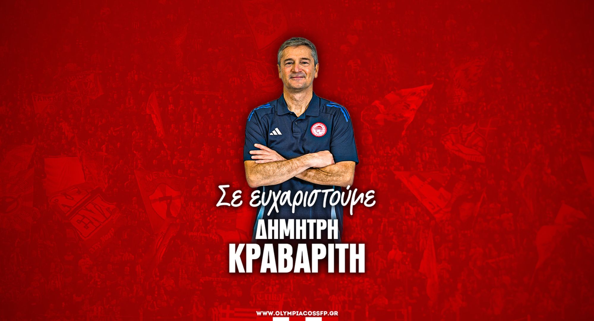Ο Σύλλογος ευχαριστεί τον Δημήτρη Κραβαρίτη για τη συνεργασία και την προσφορά του στην ομάδα πόλο Γυναικών του Ολυμπιακού και του εύχεται καλή συνέχεια στην επαγγελματική του πορεία.