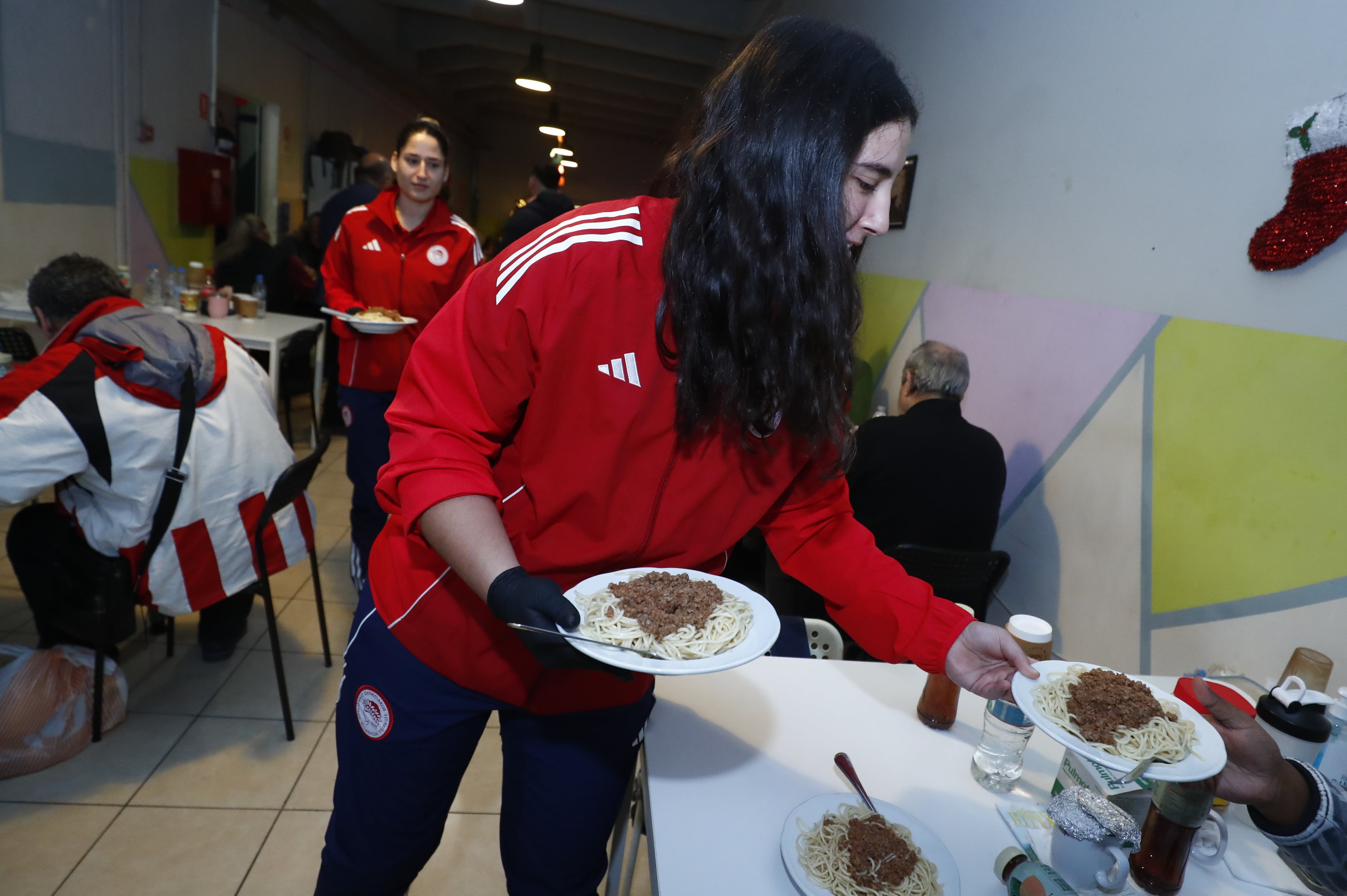 Κωνσταντίνα Μυλωνά: «Ο Ολυμπιακός, πέρα από το αθλητικό κομμάτι, εστιάζει και στον ανθρώπινο παράγοντα. Ο σύλλογος βοηθάει, στηρίζει και φωτίζει τον δρόμο της προσφοράς και της αγάπης. Σήμερα, ήρθαμε εδώ, αντιπροσωπεία της ομάδας ποδοσφαίρου Γυναικών, να μαγειρέψουμε, να σερβίρουμε και να κάνουμε συντροφιά σε άπορους και άστεγους συνανθρώπους μας, που το έχουν ανάγκη αυτές τις γιορτινές μέρες και όχι μόνο αυτές. Να ευχηθώ καλά Χριστούγεννα σε όλους με υγεία».