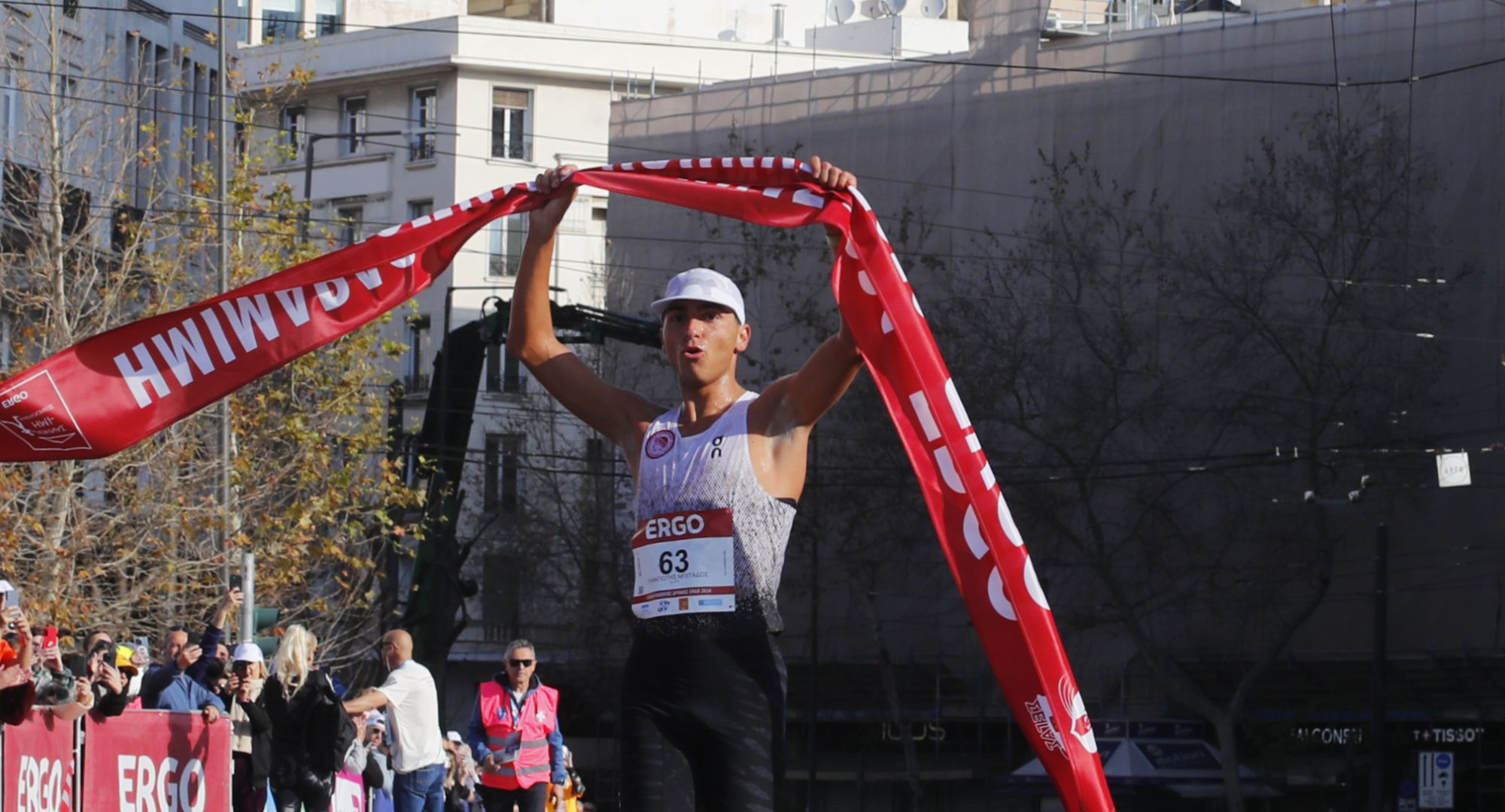 Συγκεκριμένα, στη μεγάλη διοργάνωση της πρωτεύουσας, ο «ερυθρόλευκος» αθλητής, παγκόσμιας κλάσης του τριάθλου, μετά το 13ο χιλιόμετρο, ξέφυγε και με πολλές δυνάμεις, έφτασε πρώτος στη γραμμή του τερματισμού των 21χλμ., σε 1:04.44.