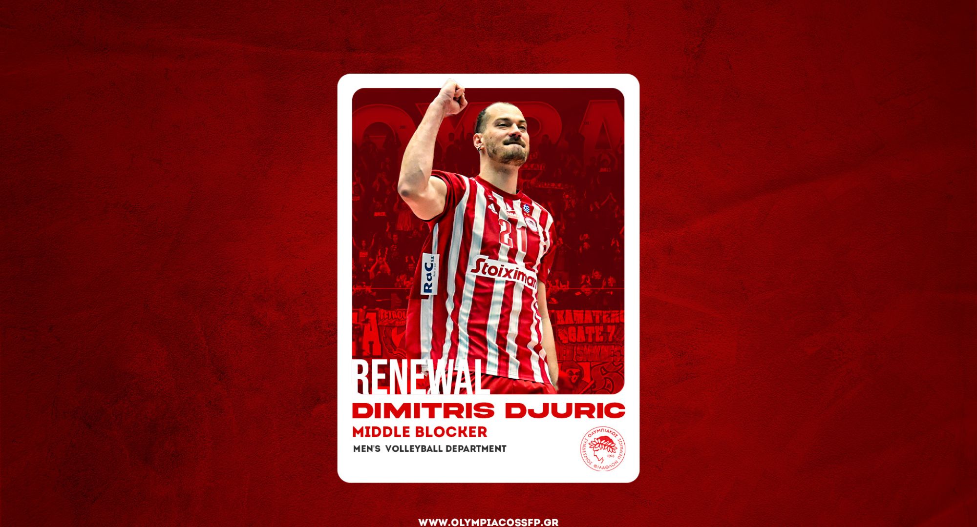 Ο ΟΛΥΜΠΙΑΚΟΣ Σ.Φ.Π. ανακοινώνει την ανανέωση της συνεργασίας του με τον Δημήτρη Τζούριτς. Ο διεθνής κεντρικός υπέγραψε το νέο του συμβόλαιο, διετούς διάρκειας και παραμένει στο ρόστερ της ομάδας βόλεϊ Ανδρών του συλλόγου.
